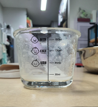 큐브 두 개에 이 정도 나온다.. 60~65ml 정도 되는 것 같긴 함..