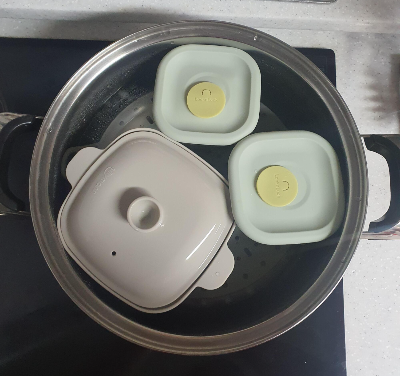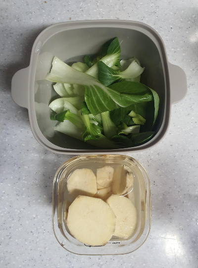청경채는 물 100ml 넣고 고구마는 70ml 넣었음