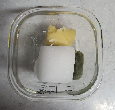 똑같이 쌀미음 2개, 고구마 1개, 청경채 1개