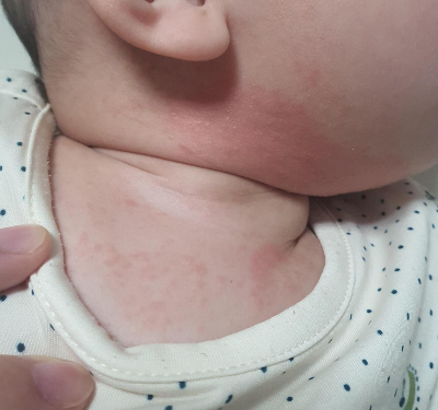이유식 먹고 나서 가끔 내가 제대로 못 닦아서 턱 사이에 이유식이 묻어있을 때가 있어서 내가 잘못 씻겼나;;; 싶어서 기저귀도 갈아줄 겸 몸을 확인했는데 세상에!!!!!!!!!