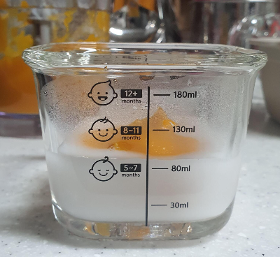 이유식 그릇에는 60ml 정도 담음