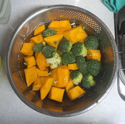 단호박을 까져있는 것을 샀고.. 브로콜리는 씻기 힘든 재료이기 때문에...