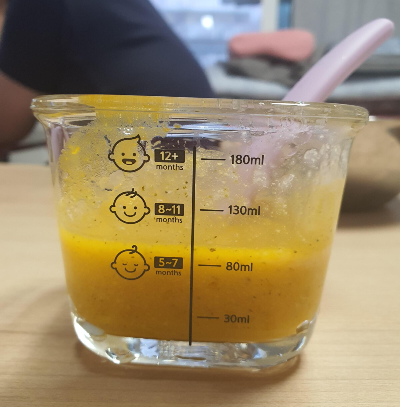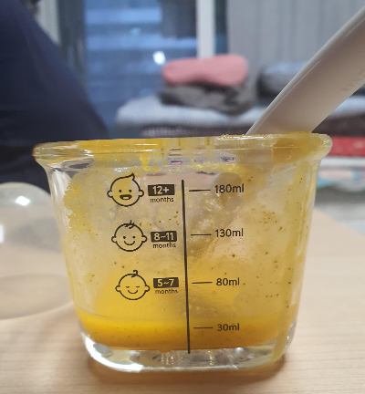 하루 쉬었다 먹어서 그런 건지.. 단호박이 반으로 줄고 브로콜리가 들어가서 그런지 어린이의 반응은 딱히 좋지는 않았다.