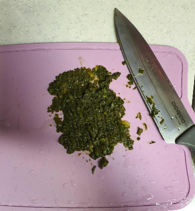 이제 교정일 6개월도 되었겠다 삐뽀삐뽀 이유식 책에서 본 것처럼 질감을 살려줘도 되지 않을까? 하는 생각이 들어 청경채를 잘개 다졌다..