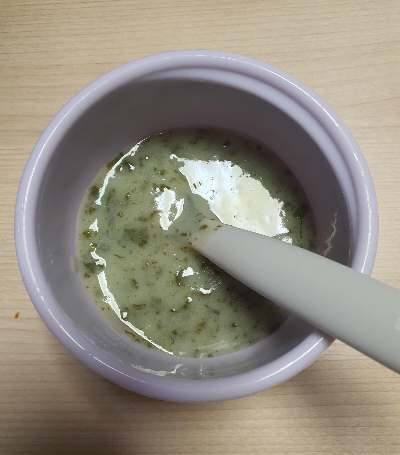 쌀미음과 아주 조금의 고구마와 청경채인데 농도가 적절한 느낌이었다.