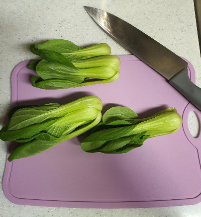 1-2. 두근두근하면서 청경채를 준비한다..