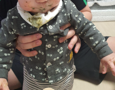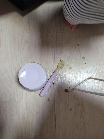 요새 자꾸 이유식 수저에 탐내고 수저 주면 손으로 잡고 집어던져서 머리까지 이유식이 묻는 바람에.. 어쩔 수가 없음..