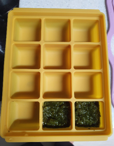 총 28g정도 나왔는데 나머지 8g은 당일 먹일 용도로 따로 빼둬서 큐브 두 칸 나옴..