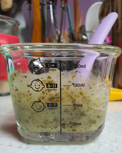 1-1. 이유식의 농도가 높아서 물을 두 스푼 추가하였다.