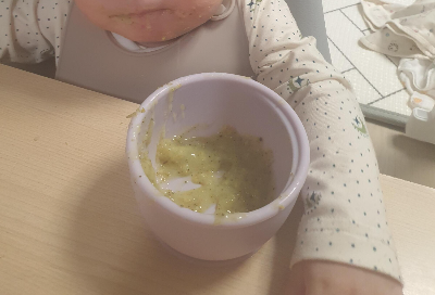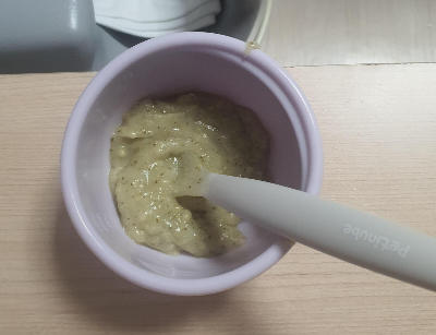 브로콜리 넣은 이유식은 기존의 것과 다르게 알맹이가 더 씹히는지 표정이 영 안 좋음 ㅋㅋㅋ