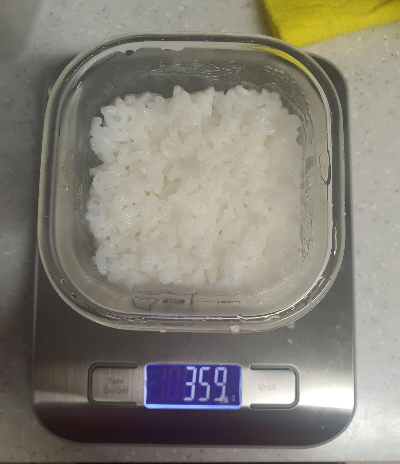 물에 30분 불리고, 불린 쌀 합쳐서 물을 130ml 넣고 한 시간 쪘다.