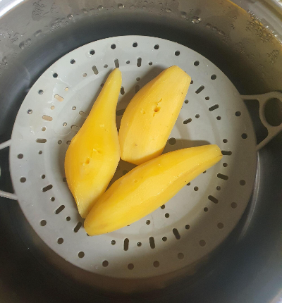 조금 잘게 자르고 쪘어야 했는데 정신 놓고 그냥 통으로 쪄서 두 시간 정도 쪘다.