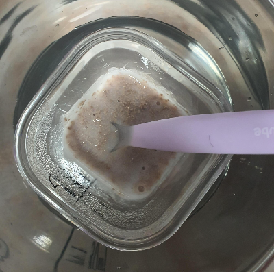 쌀미음 큐브 1개, 고구마 큐브 1개, 소고기 큐브 1개의 조합이다.