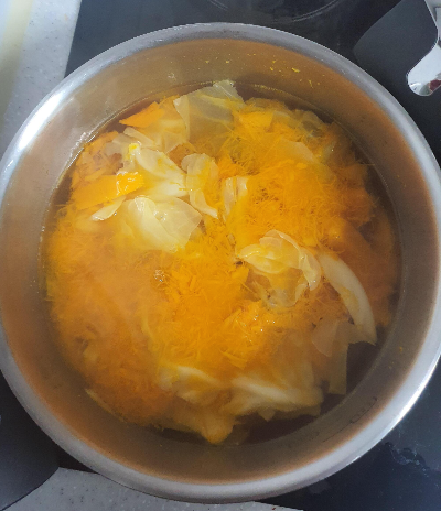 양배추는 속의 것은 이유식 용으로 빼버렸으니 그 겉의 두꺼운 부분으로.. ㅇㅇ