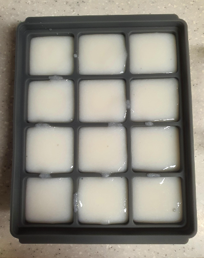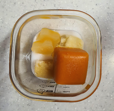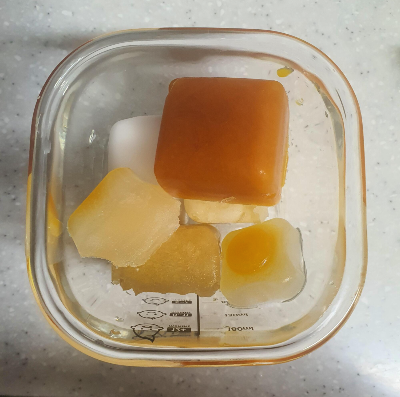 쌀미음의 양을 30ml를 넣어서 채수 큐브를 2개를 넣었다.