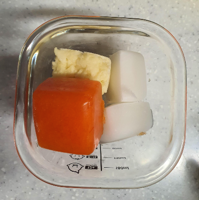 당근이 들어가서 좀 덜먹는 것 같으니 감자를 추가해본다.