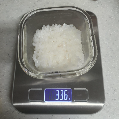 2-3 기준으로 그릇+밥이 336g, 그릇은 230g이니까 밥은 106g